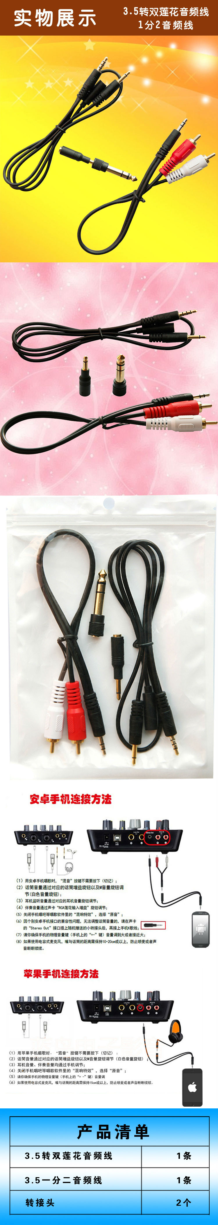商品名称:艾肯upod nano/pro 手机音频线双莲花公转3.5mm公线