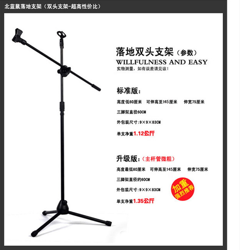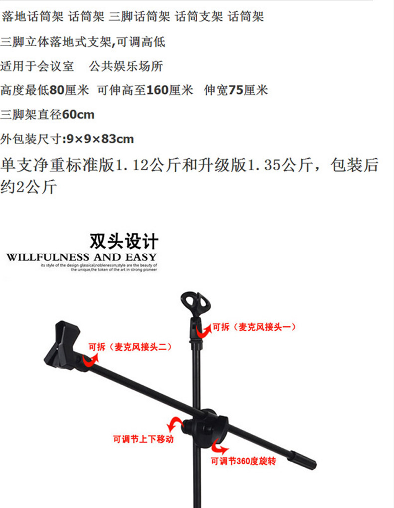 商品名称:麦克风话筒落地式支架 直播录音棚专业演出舞台通用可调节咪架