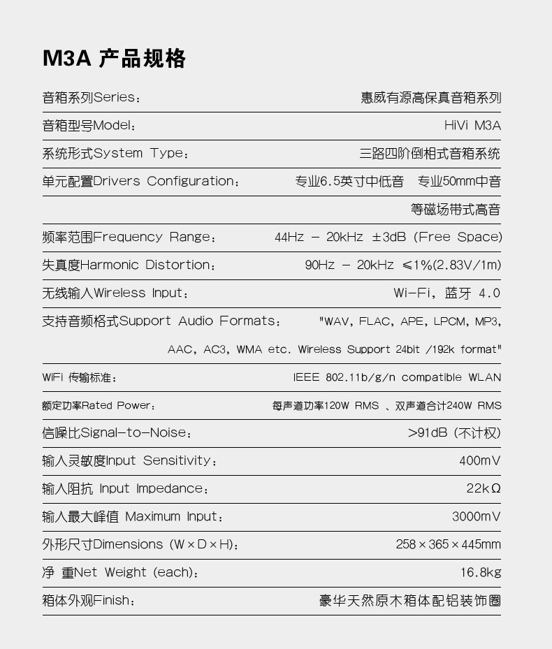商品名称:惠威M3A高保真HiFi多媒体音箱无线wifi音响提前订到手价4999元