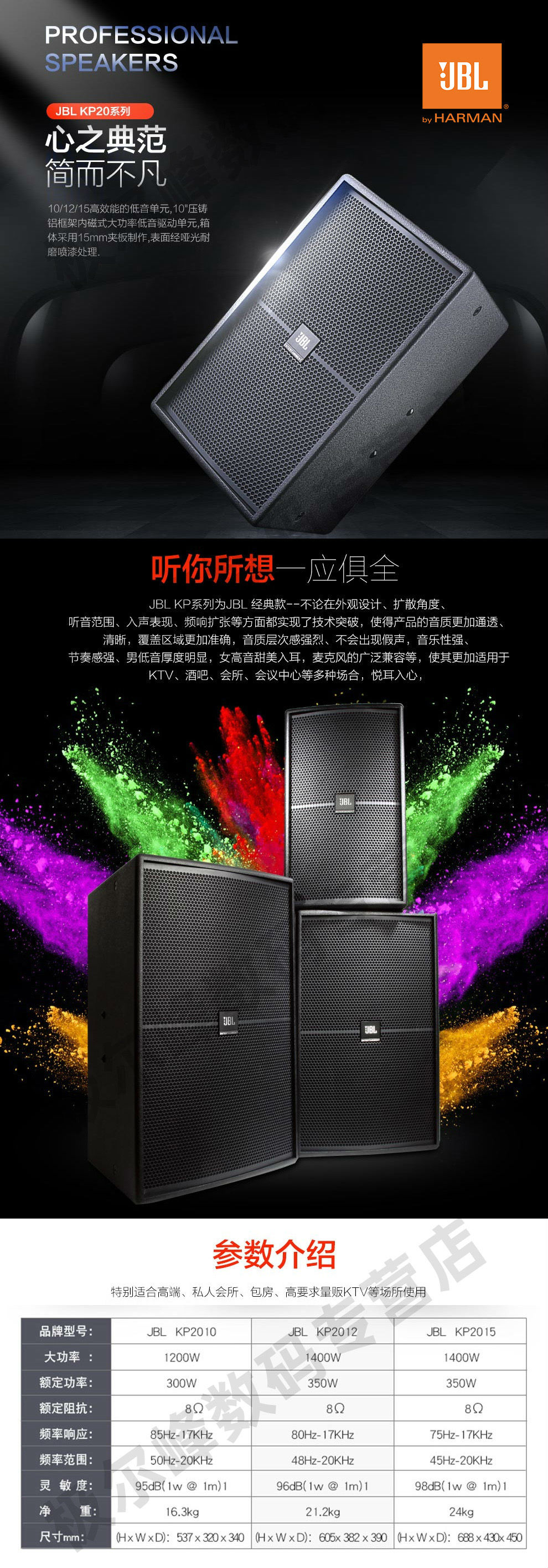 商品名称:JBL KP2012 专业室内外舞台演出音箱 私人会所量贩KTV酒吧音响组合 家庭KVT专业音响套装 套餐5 KP2015 15英寸专业版无点歌机 标准版一对音箱配置 适合家庭KTV公司年会活动
