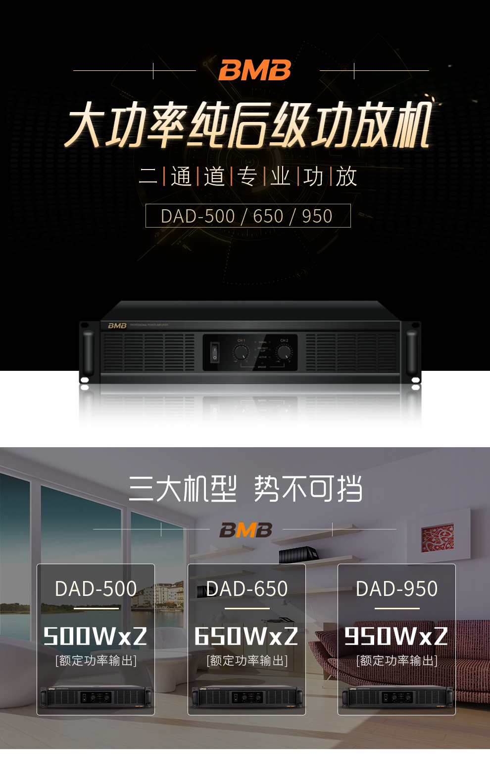 日本BMB DAD系列 500 650 950 新款高品质KTV大功率纯后级专业舞台卡拉OK功放 DAD-500 双通道500W