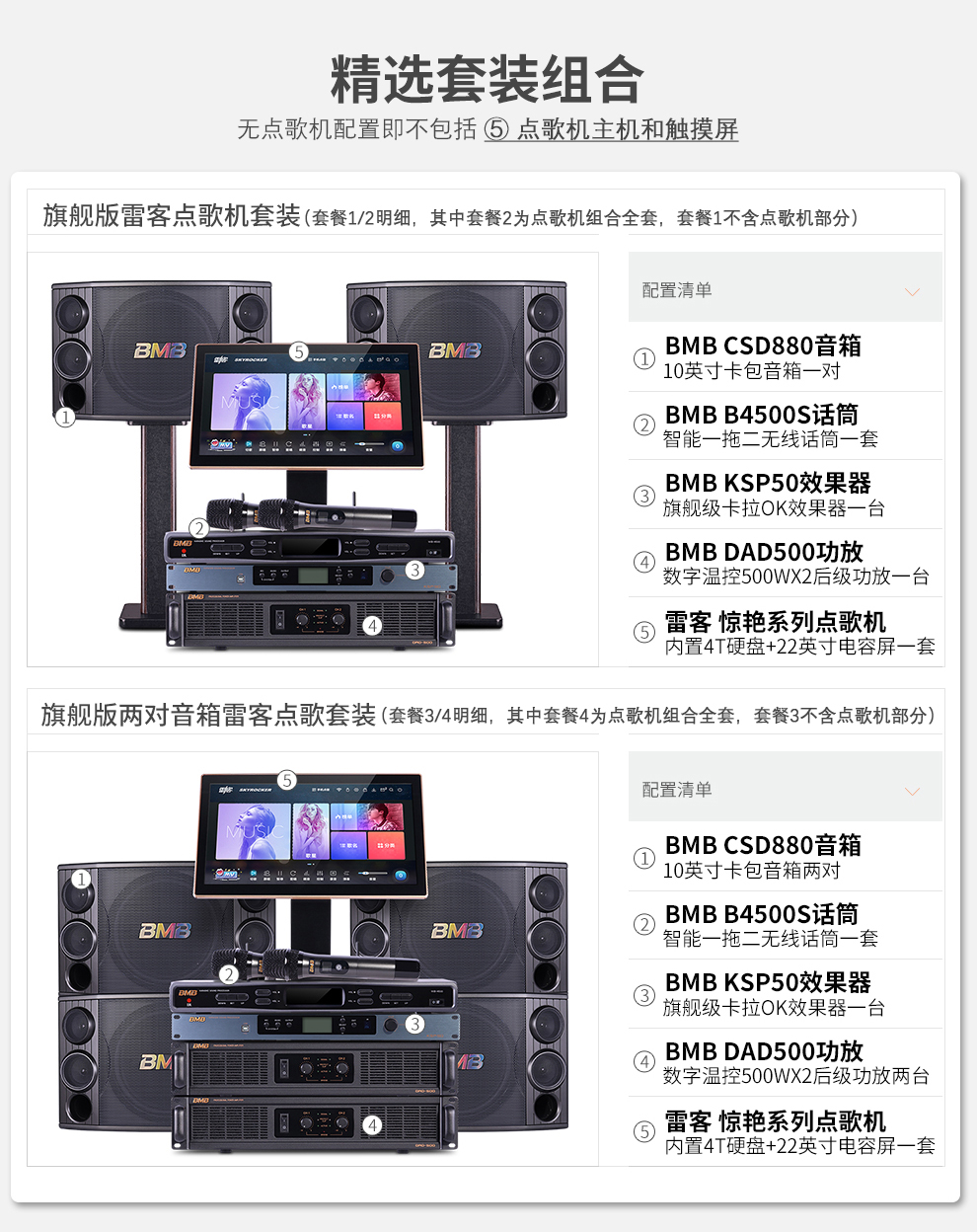 BMB CSD880 家庭影院ktv音响组合家用套装 ktv点歌机全套 高端会所旗舰卡拉OK音响套装 套餐1:一对音箱不带点歌机 DAD500功放 500W*2