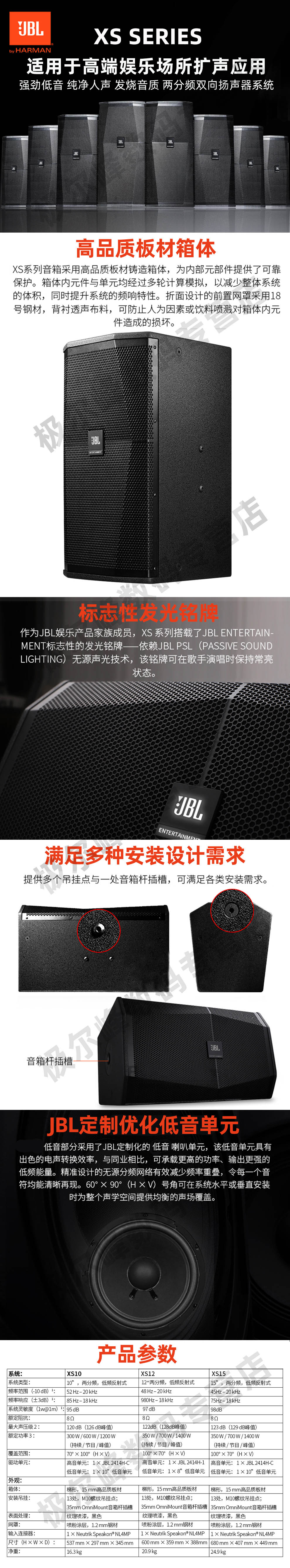 商品名称:JBL XS12 专业舞台音响组合商用套装 ktv点歌机一体机 语音点歌KTV音响套装 官方标配 单独专业音箱一只 JBL XS10 10英寸专业箱