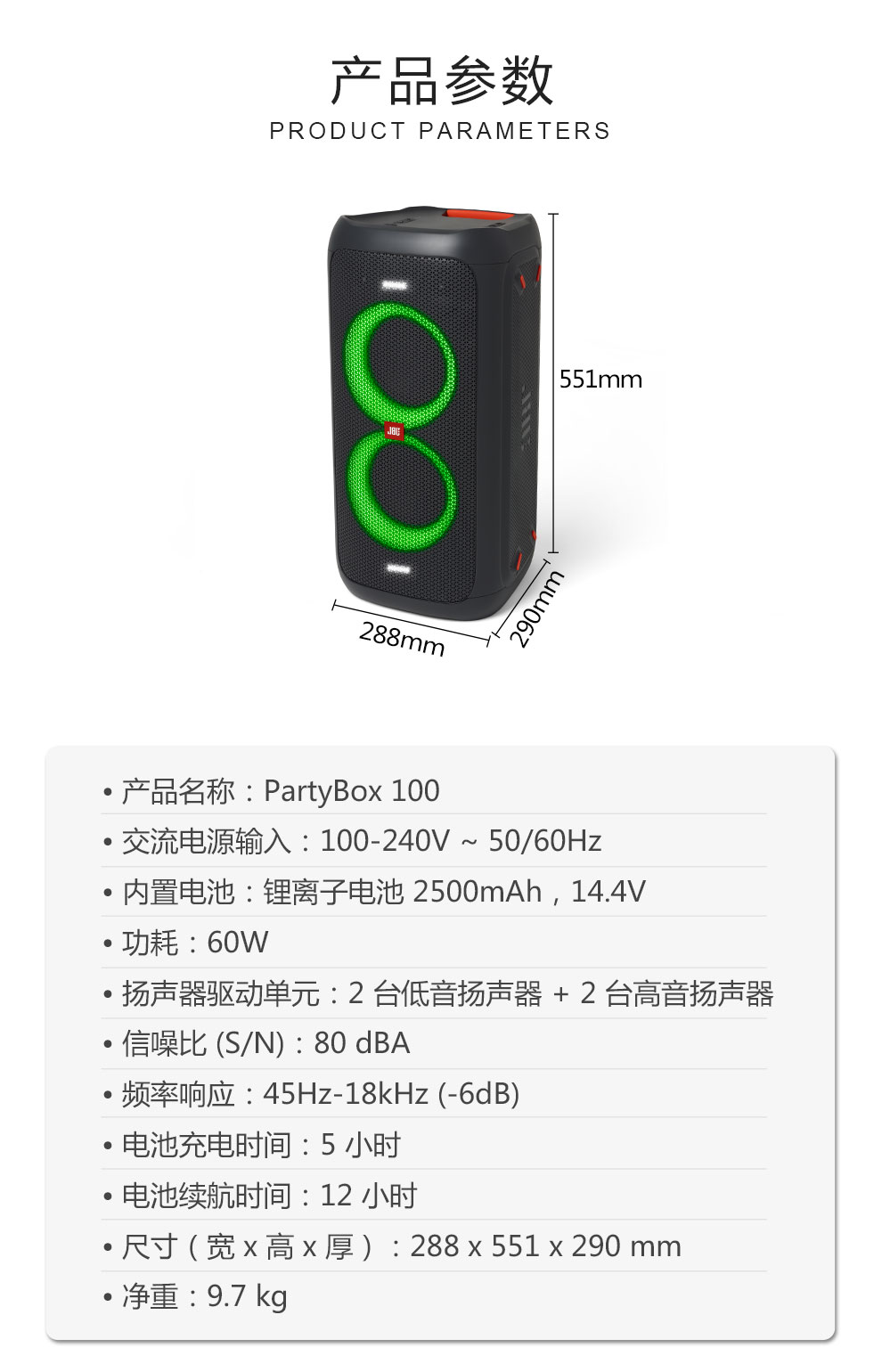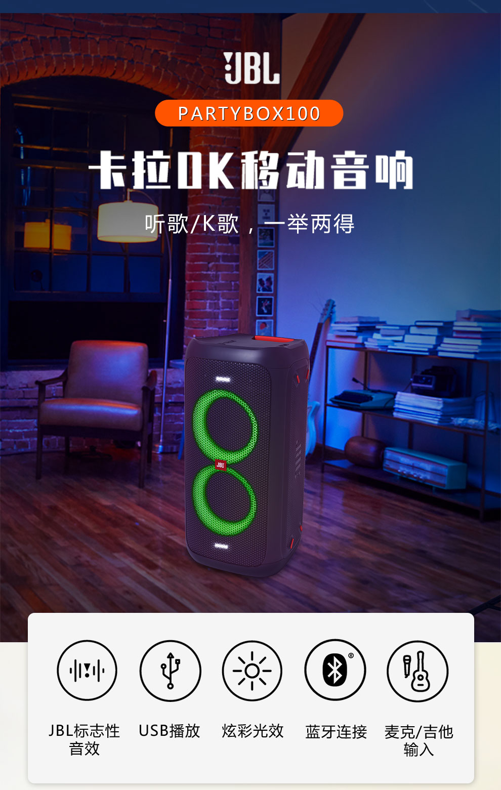 商品名称:JBL PARTYBOX100音响 音箱 家庭影院 家庭KTV卡拉OK套装 客厅音响蓝牙音箱