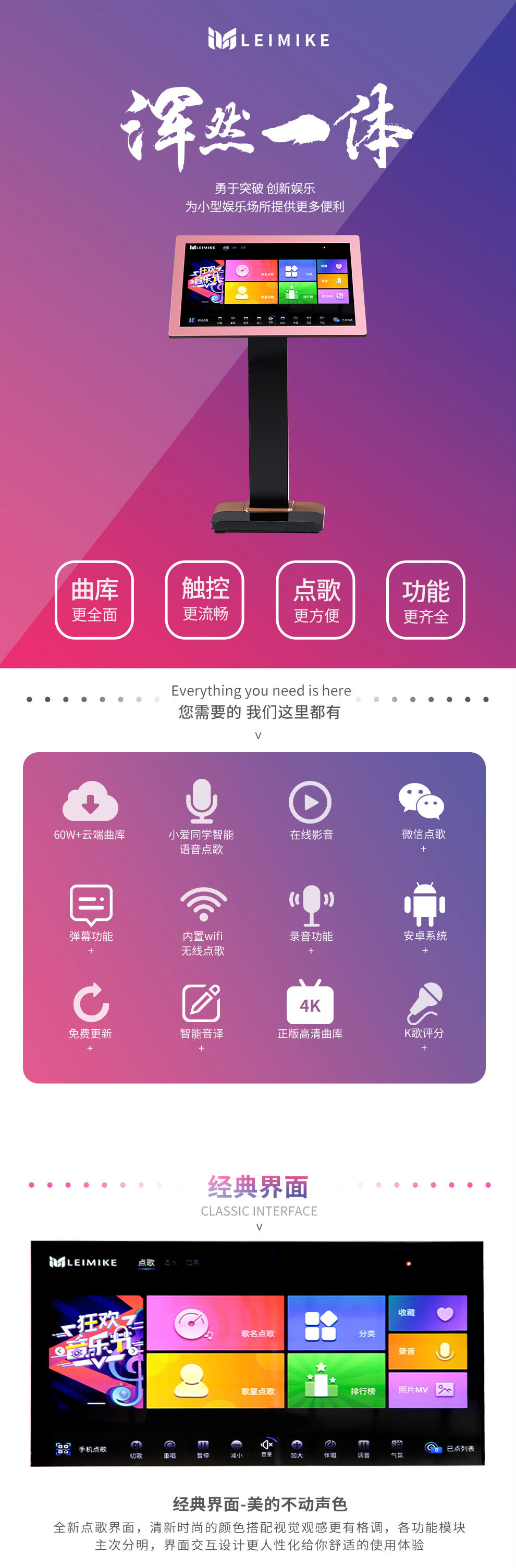 新款NOTE一体机 内置雷客点歌系统家庭ktv点歌机卡拉OK点唱机安卓系统家用小