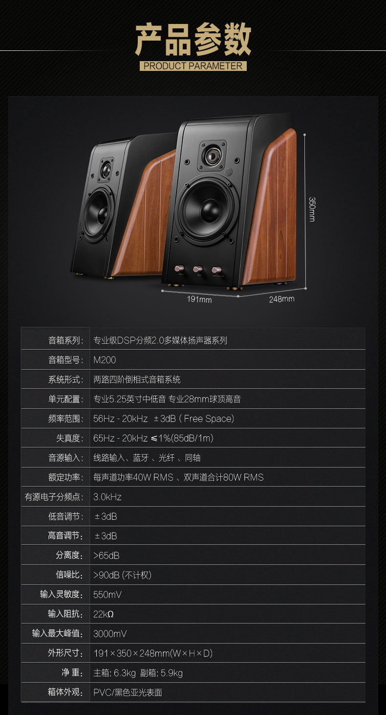 商品名称:【新品】惠威M200无线蓝牙电脑有源HiFi书架音箱客厅电视数字音响