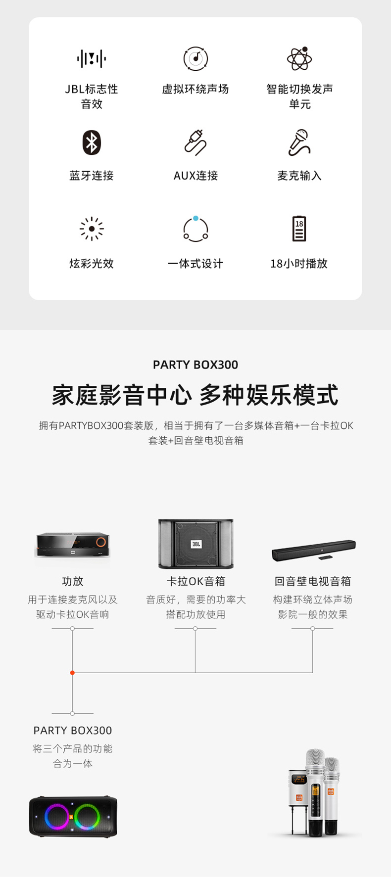 JBL PARTYBOX300音响 音箱 家庭影院 家庭KTV卡拉OK套装 客厅音响蓝牙音箱