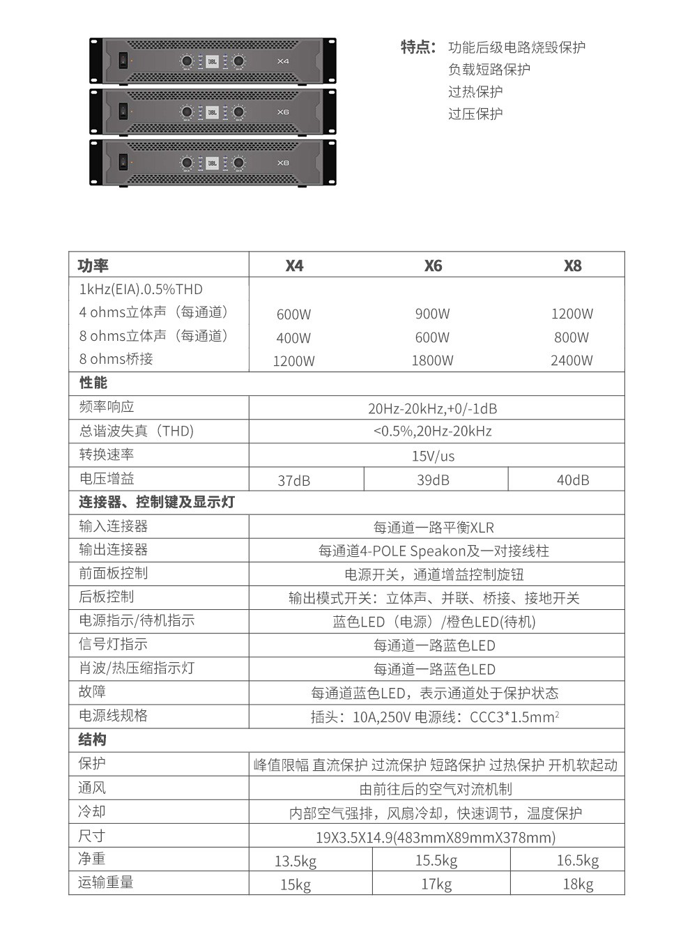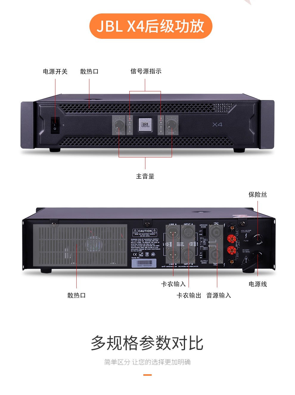 商品名称:JBL X4 X6 X8专业纯后级功放设备 卡拉OK 舞台 KTV 会议家用 双通道大功率功放