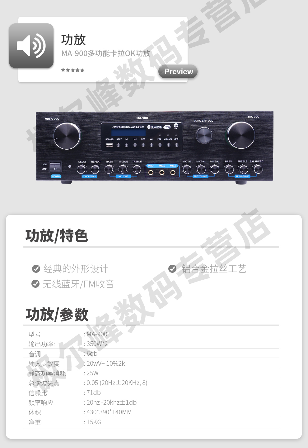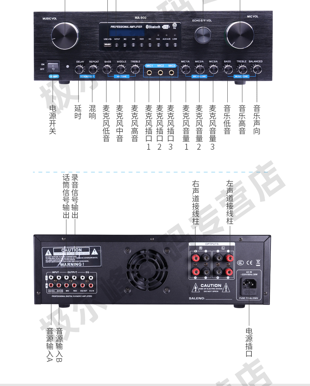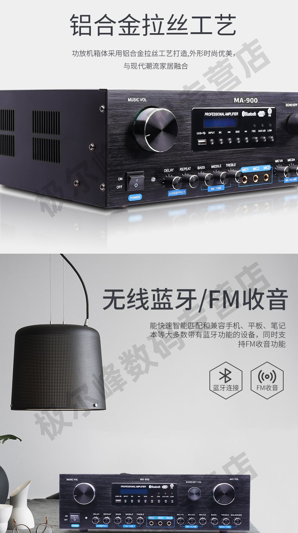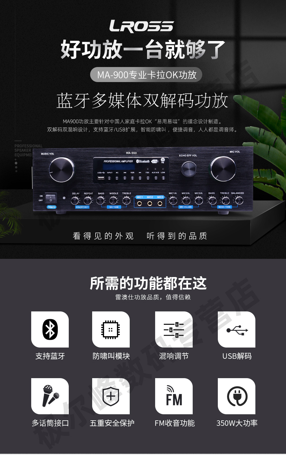商品名称:LROSS MA900定制家庭卡拉OK功放 蓝牙USB双解码 350W合并式大功率防啸叫功放 会议