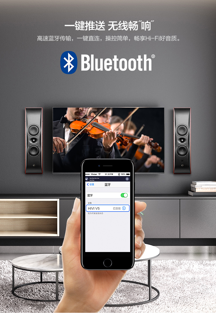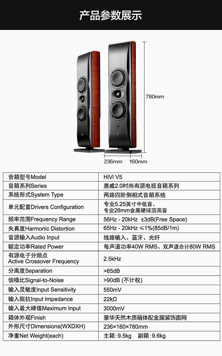 商品名称:【新品】惠威V5立体声有源客厅家庭影院电视蓝牙HiFi回音壁木音响