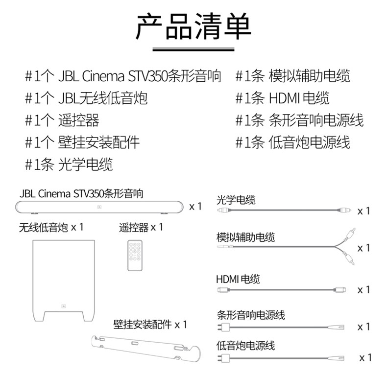 JBL CINEMA STV350平板电视回音壁音箱家庭影院hifi蓝牙大功率 CINEMA STV350