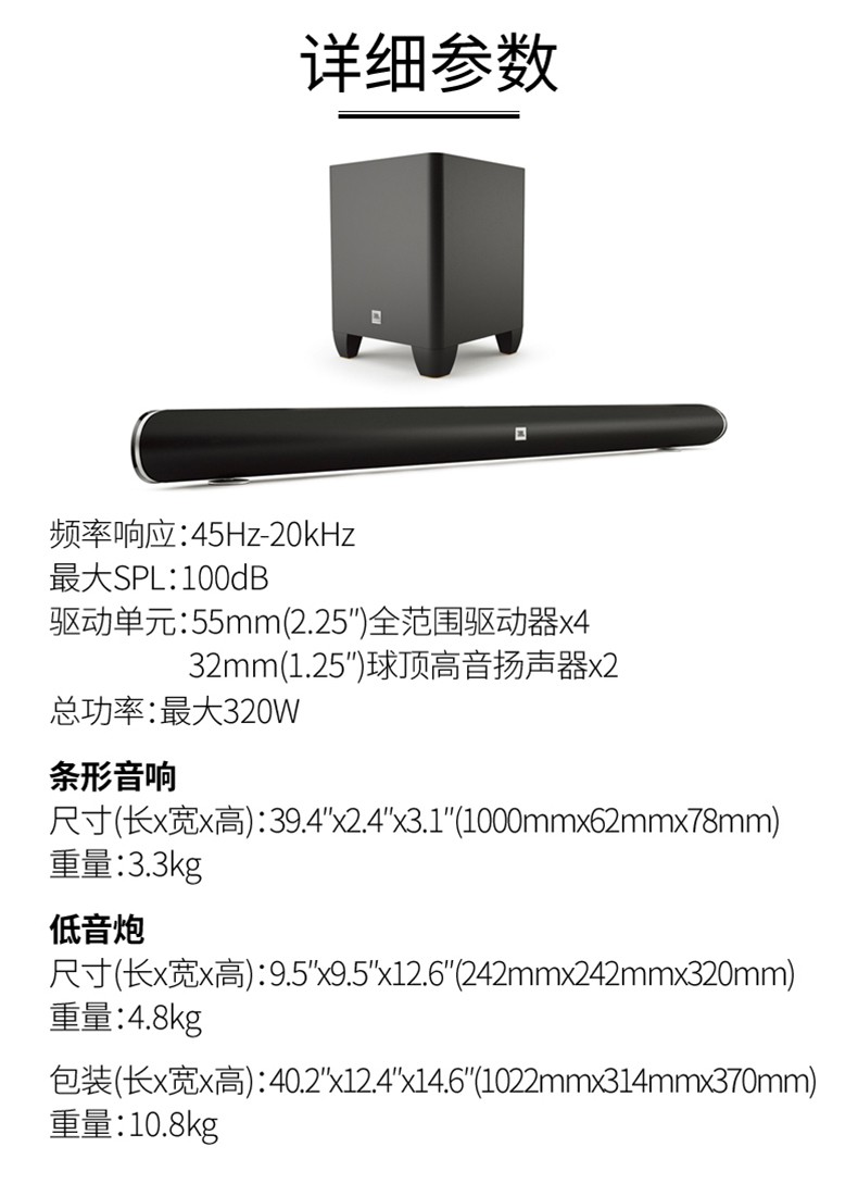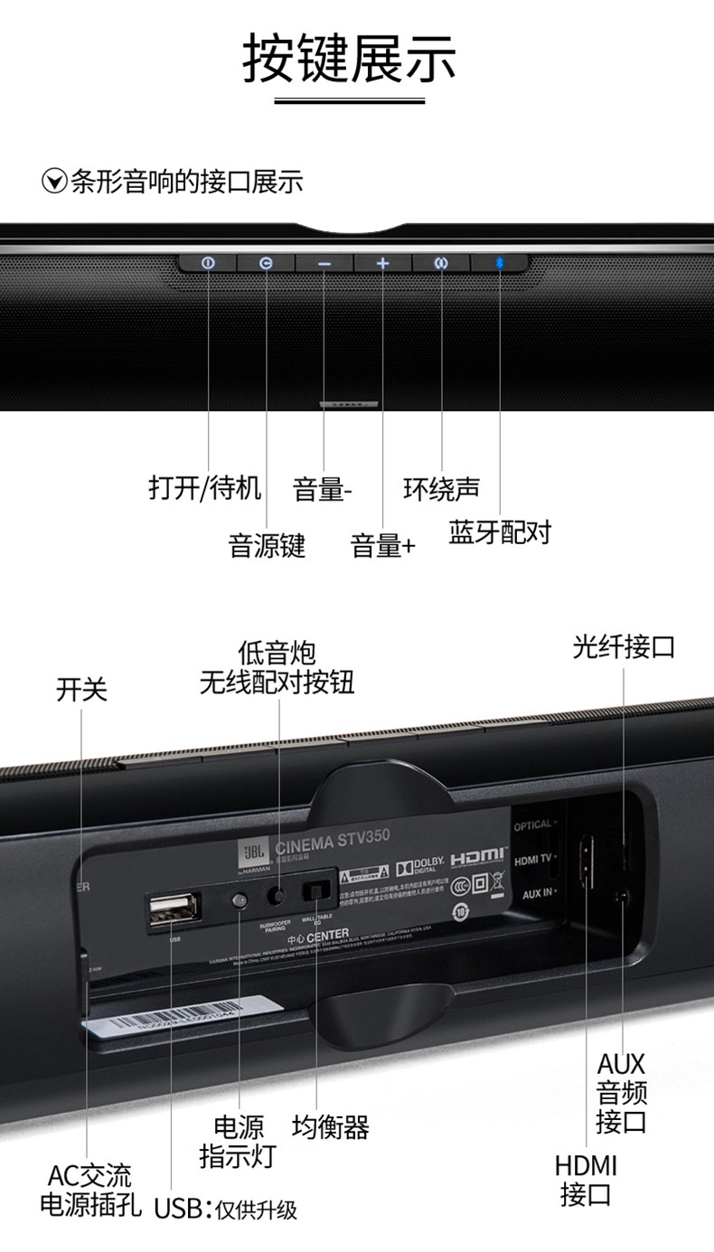 商品名称:JBL CINEMA STV350平板电视回音壁音箱家庭影院hifi蓝牙大功率 CINEMA STV350