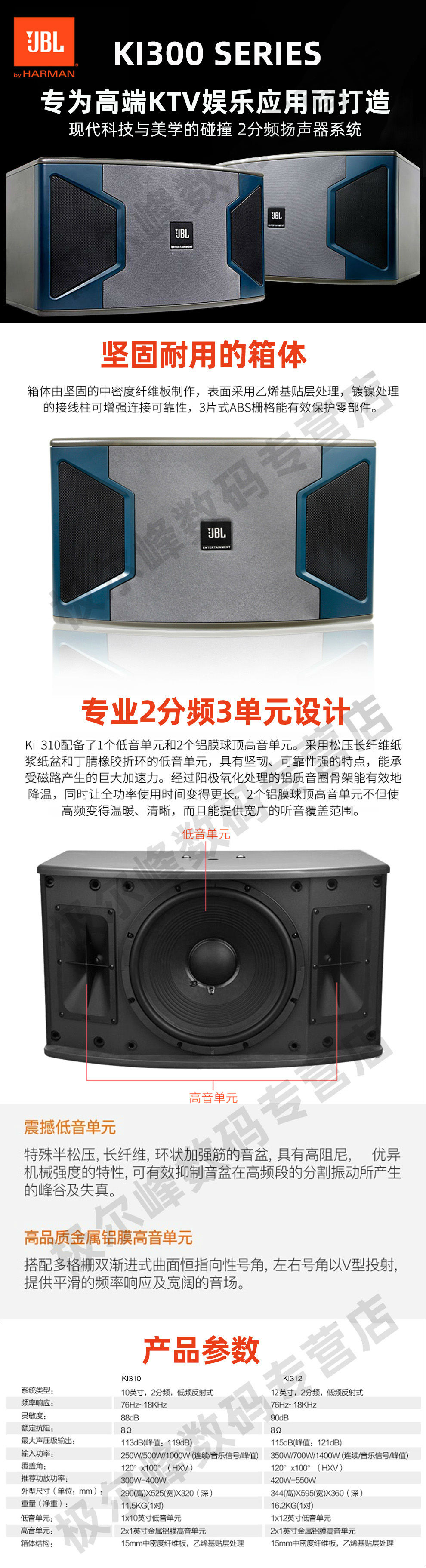 商品名称:JBL ki310家庭ktv音响套装卡拉OK家用客厅专业会议卡包音箱全套家用K歌量贩商用组合音响
