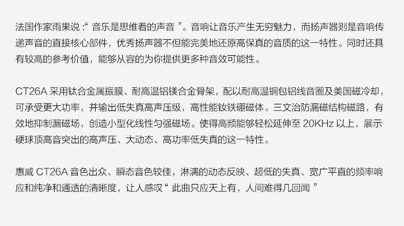 商品名称:HiVi惠威CT26A专业车载26mm球顶高音扬声器喇叭单元无损改装音响