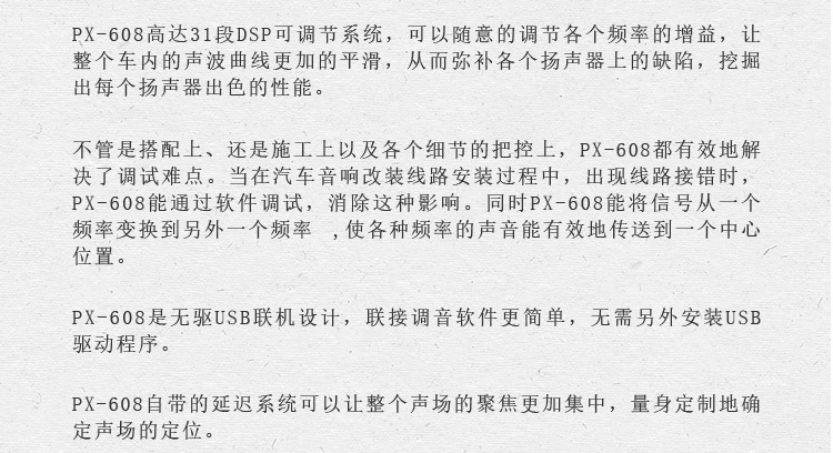商品名称:HiVi惠威PX-608专业无损改装车载喇叭音响扬声器单元DSP处理器