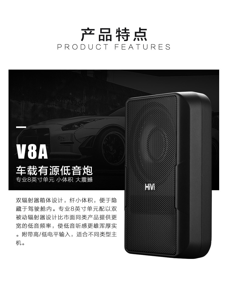 商品名称:HiVi惠威V8A自带功放8英寸喇叭汽车无损改装车载扬声器有源低音炮