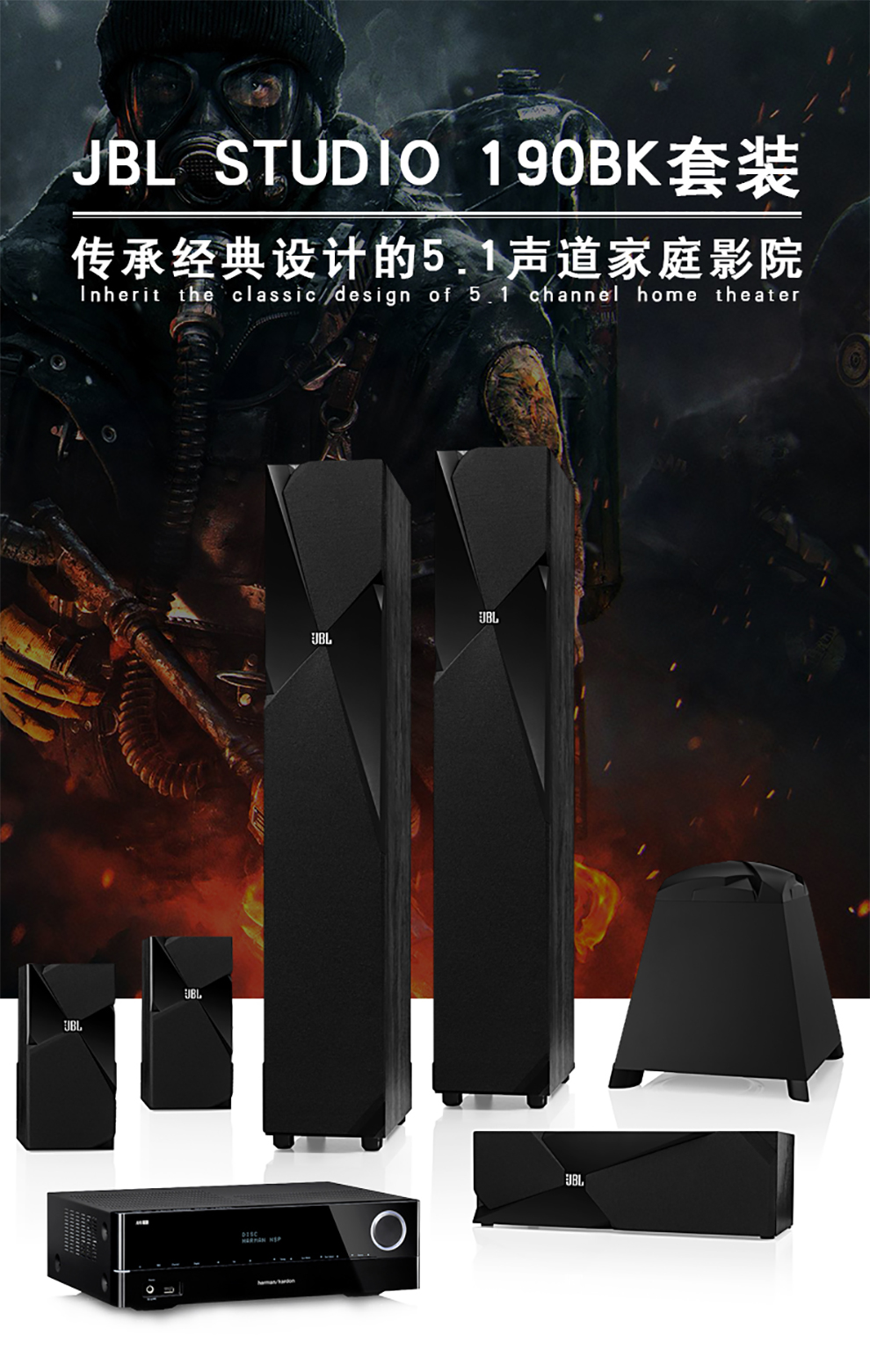 JBL 190影院音响KM310专业KTV音箱套装组合家庭影音室5.1影K套装 JBL高端影K套装
