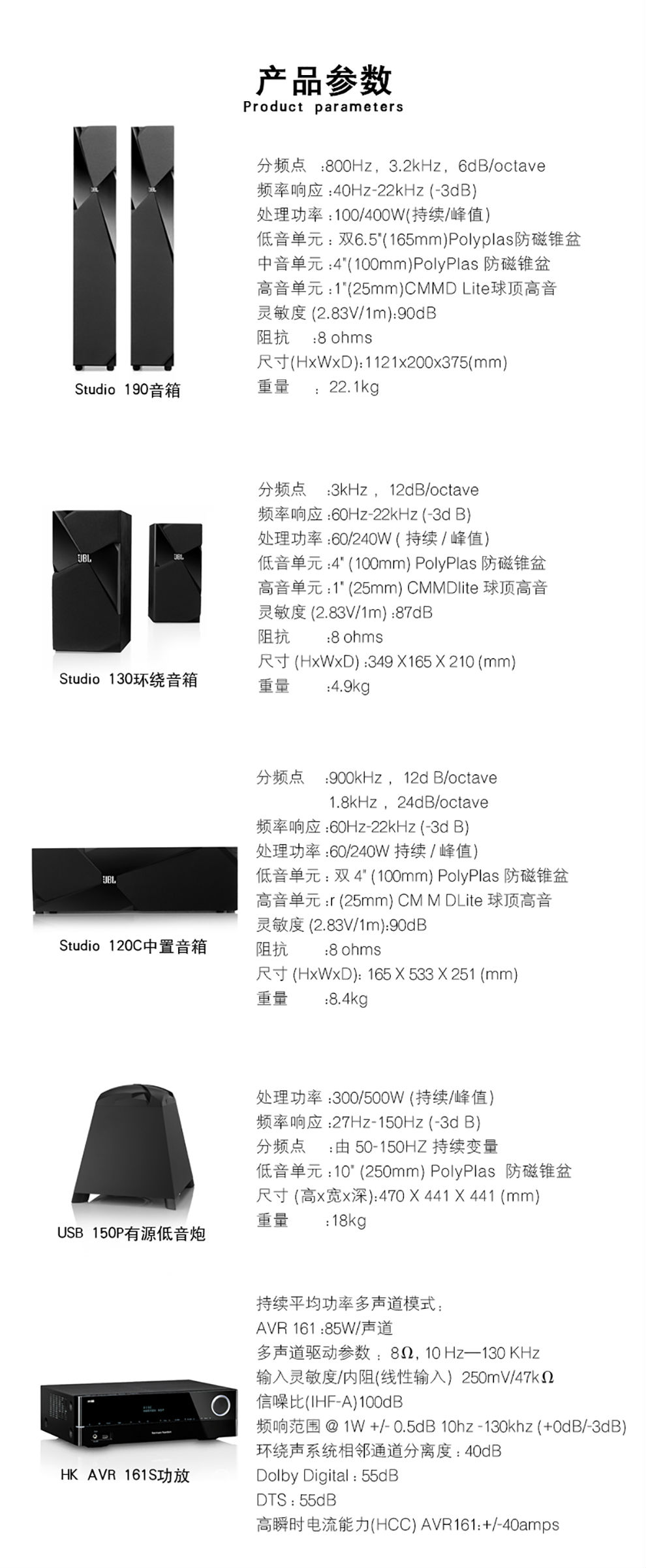 商品名称:JBL 190影院音响KM310专业KTV音箱套装组合家庭影音室5.1影K套装 JBL高端影K套装