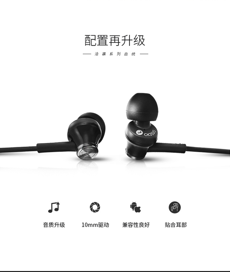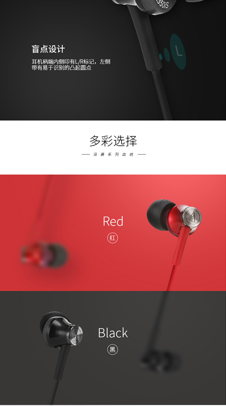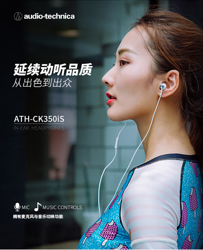 商品名称:Audio Technica/铁三角 ATH-CK350IS 手机通用线控带麦入耳式耳机