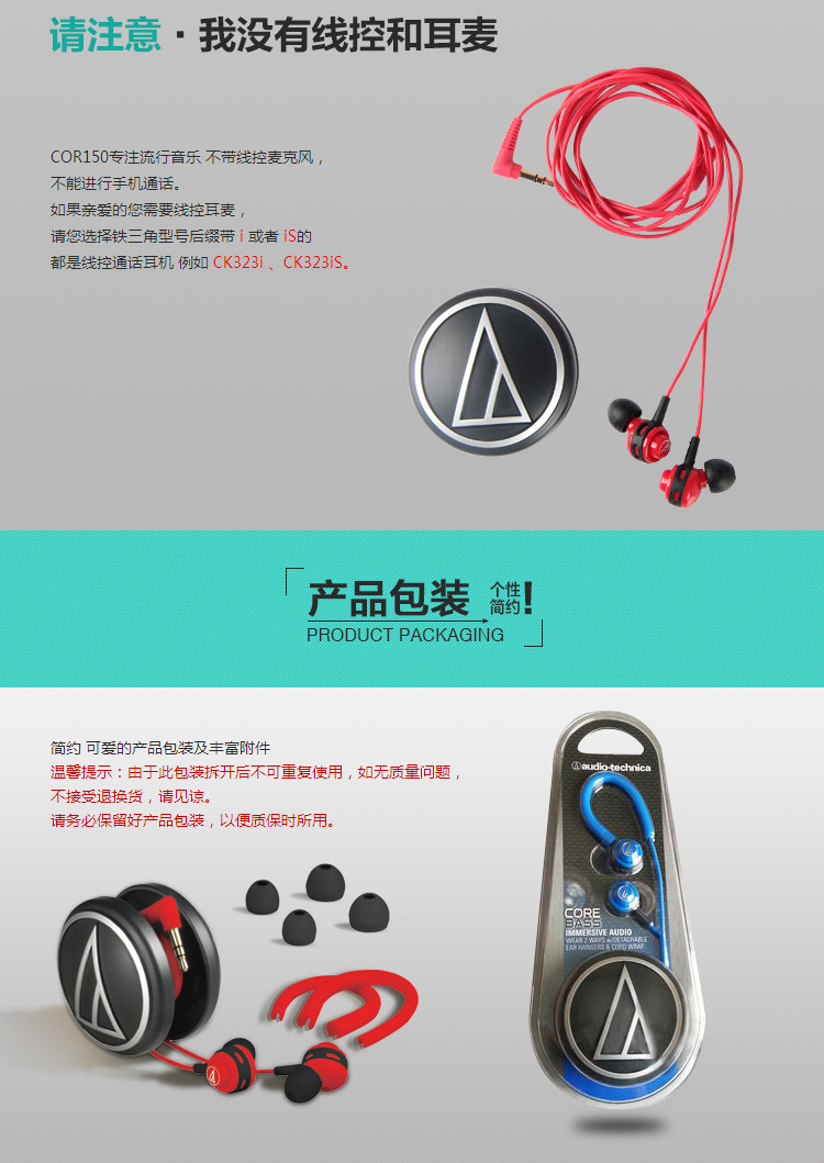 产品名称:Audio Technica/铁三角 ATH-COR150