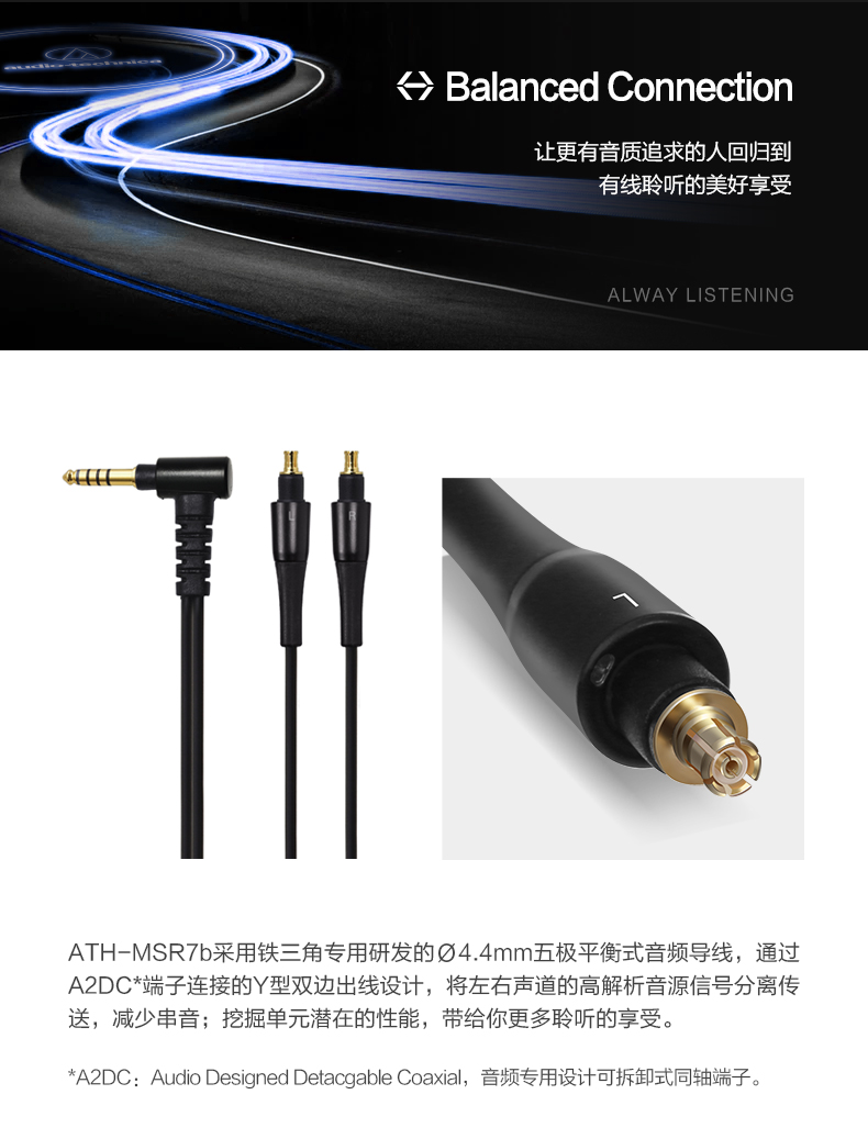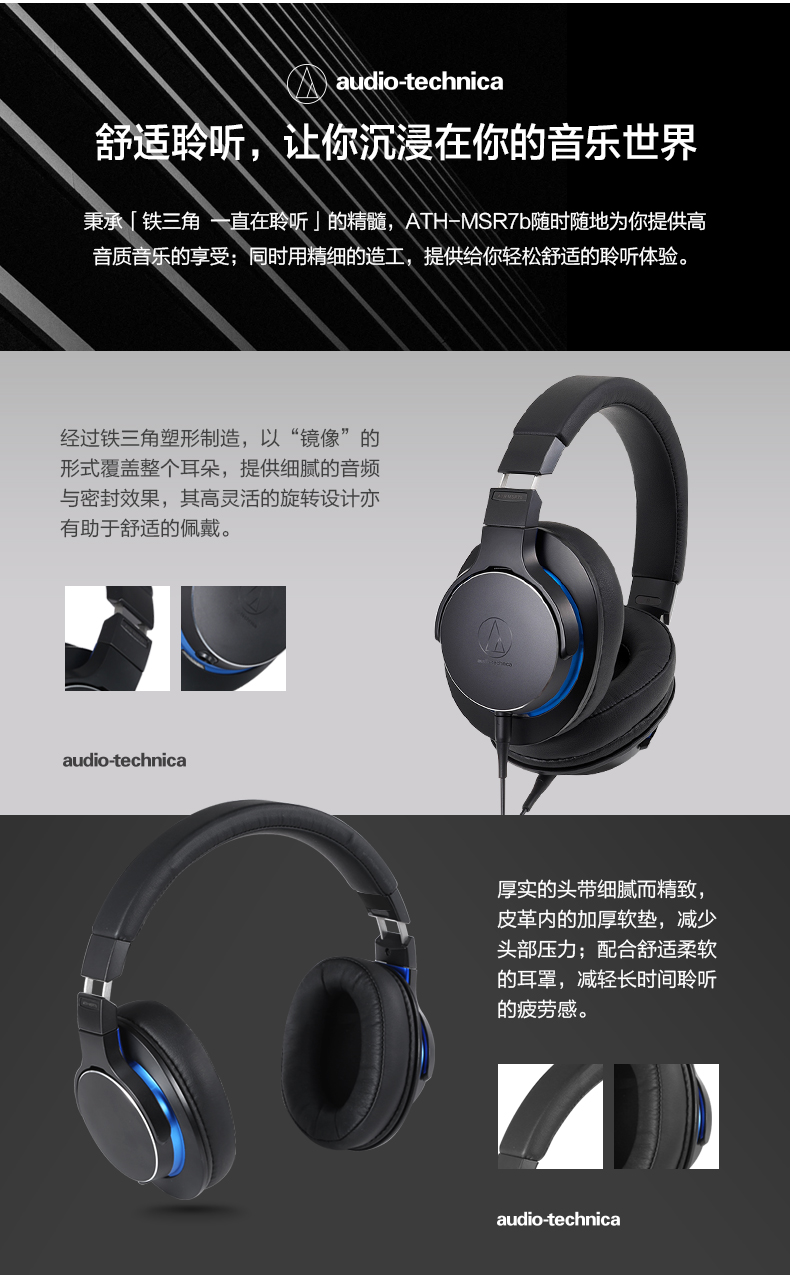 商品名称:Audio Technica/铁三角 ATH-MSR7b 高解析便携平衡连接头戴式耳机