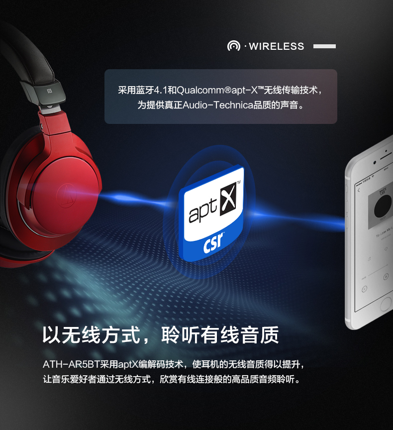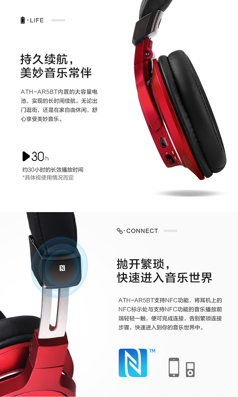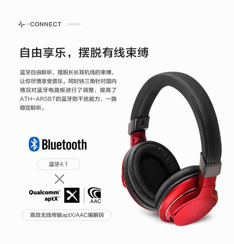 商品名称:【24期免息】Audio Technica/铁三角 ATH-AR5BT 无线头戴蓝牙耳机