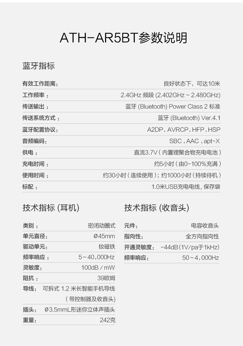 产品名称:Audio Technica/铁三角 ATH-AR5BT