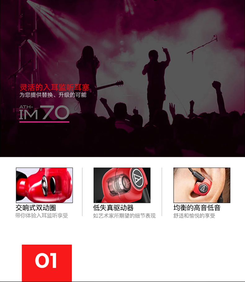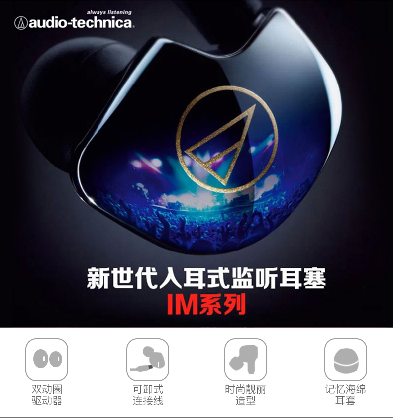 商品名称:Audio Technica/铁三角 ATH-IM70双动圈单元 入耳式监听耳机