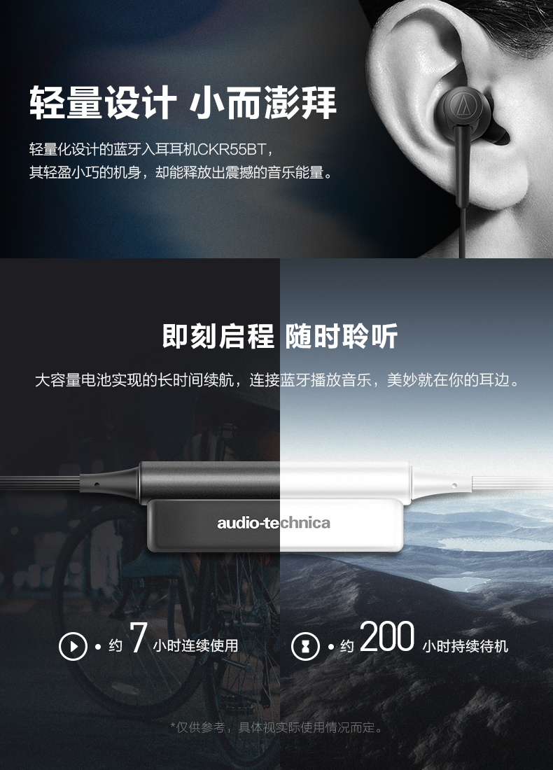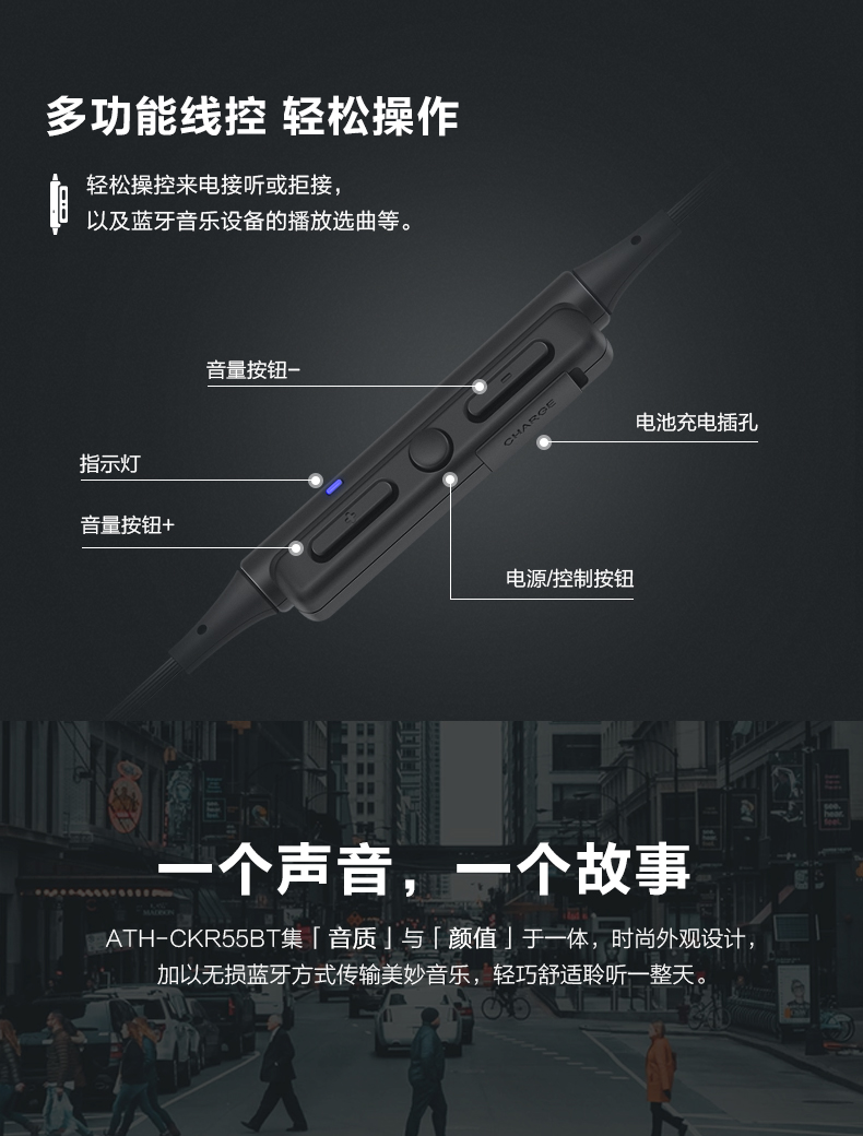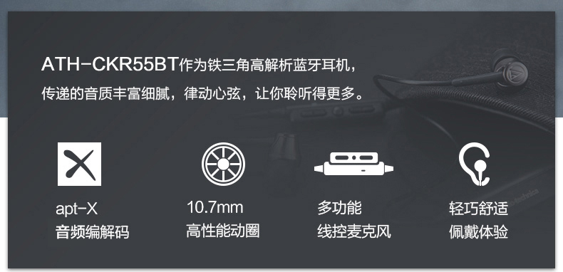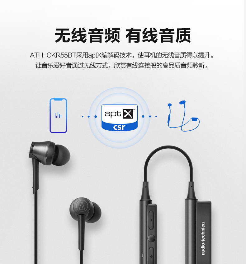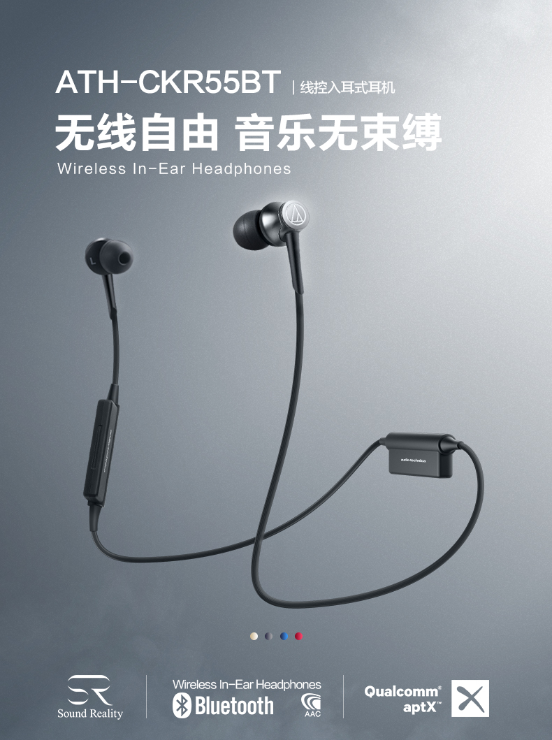 商品名称:Audio Technica/铁三角 ATH-CKR55BT 无线蓝牙线控入耳式颈挂耳机