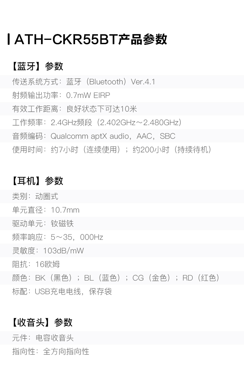 产品名称:Audio Technica/铁三角 ATH-CKR55BT