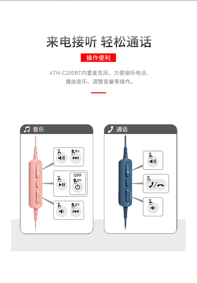 产品名称:Audio Technica/铁三角 ATH-C200BT