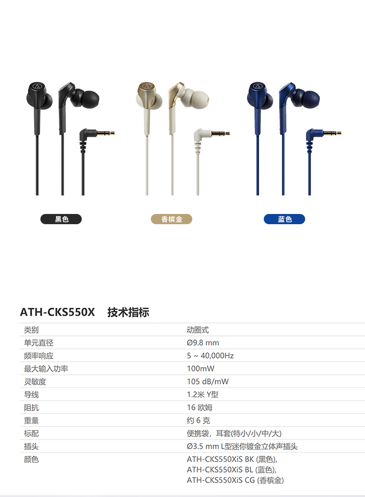 商品名称:Audio Technica/铁三角 ATH-CKS550X 入耳式重低音手机音乐耳机
