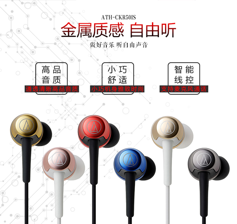 商品名称:Audio Technica/铁三角 ATH-CKR50iS 手机通话线控带麦入耳式耳机