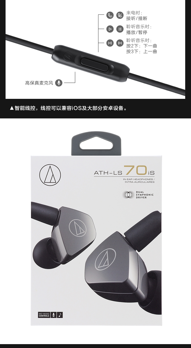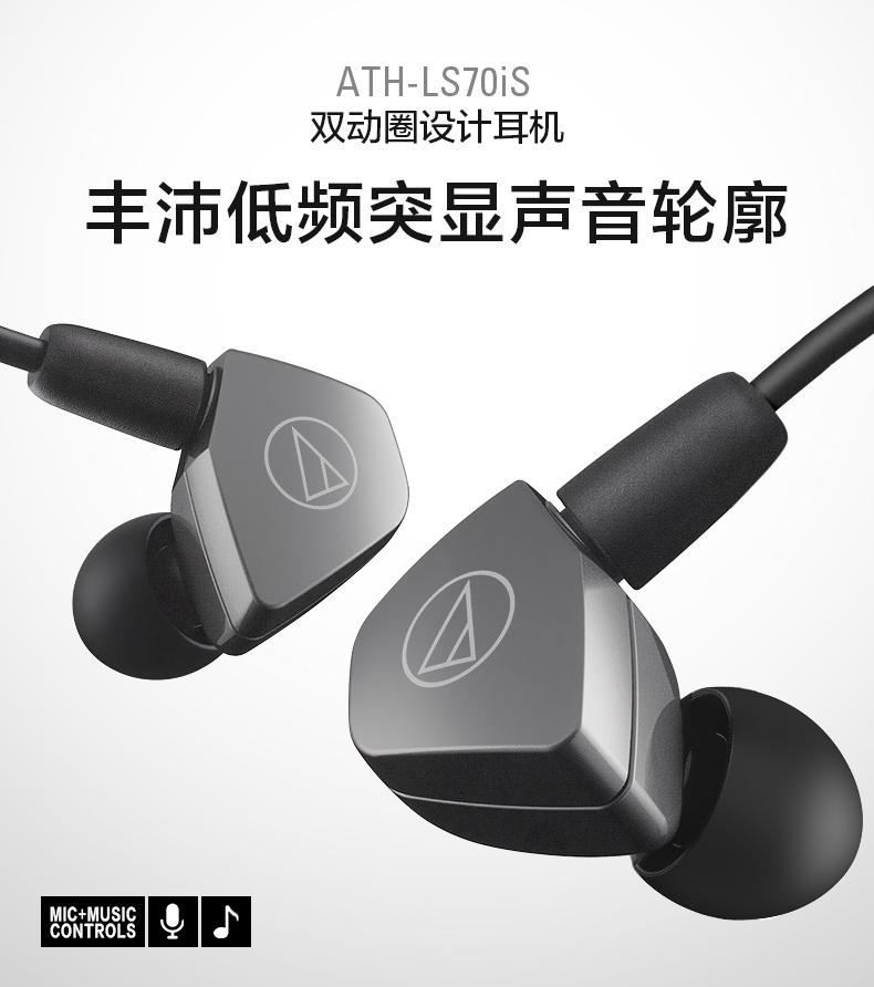 商品名称:Audio Technica/铁三角 ATH-LS70iS 双动圈手机带线控入耳式耳机