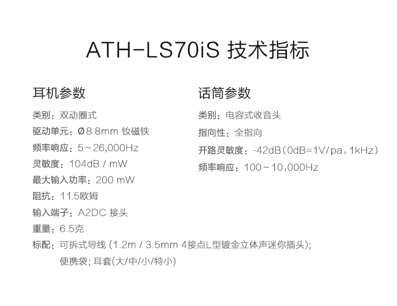 产品名称:Audio Technica/铁三角 ATH-LS70iS