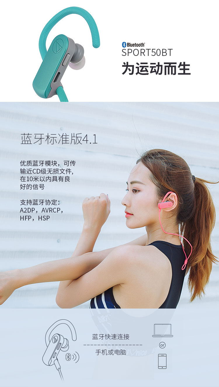 产品名称:Audio Technica/铁三角 ATH-SPORT50BT