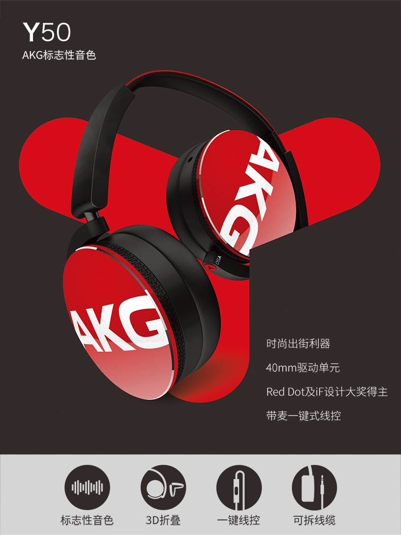AKG/爱科技 y50头戴式折叠耳机线控耳麦发烧友监听入门HiFi重低音