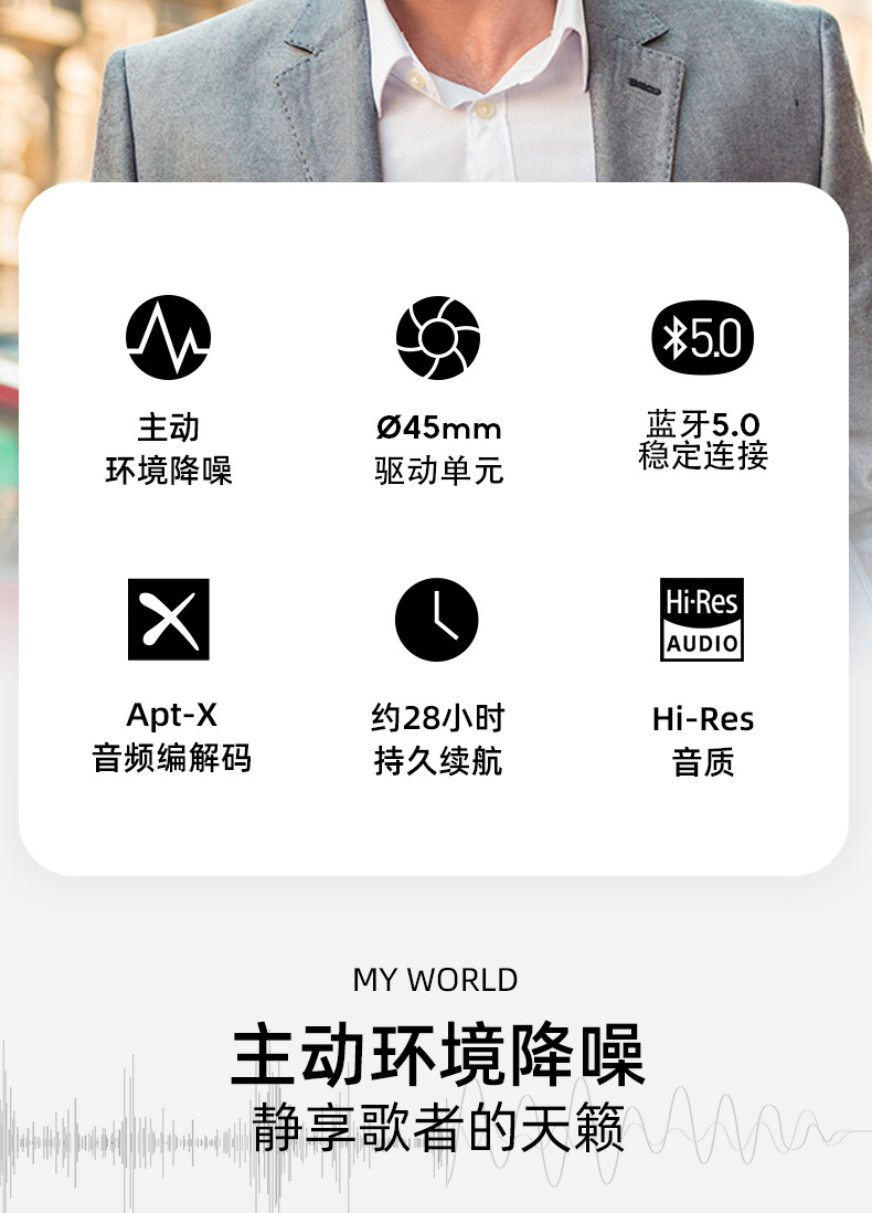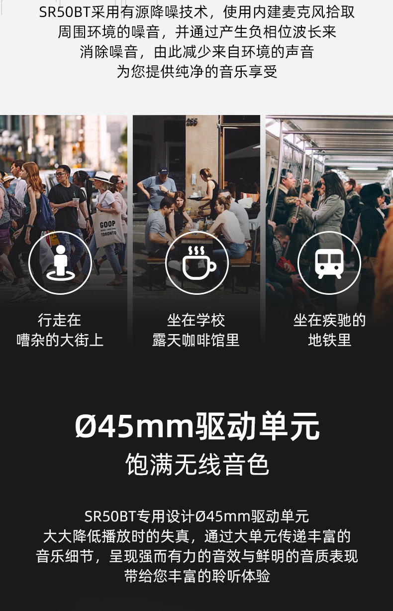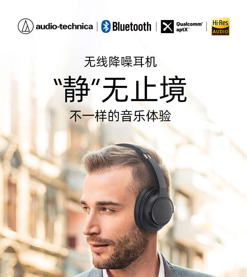24期免息Audio Technica/铁三角ATH-SR50BT无线蓝牙降噪头戴耳机