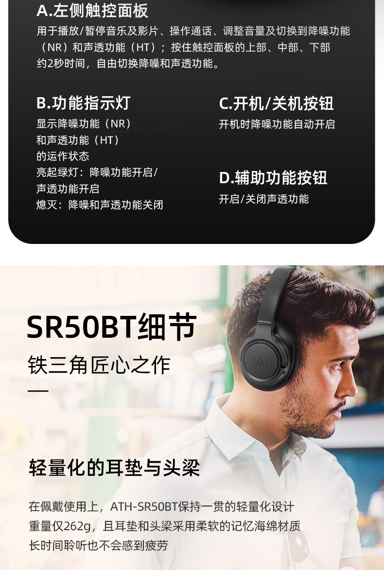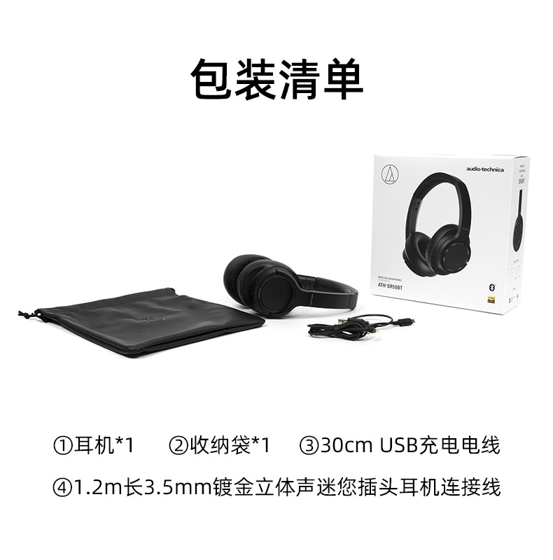 商品名称:24期免息Audio Technica/铁三角ATH-SR50BT无线蓝牙降噪头戴耳机