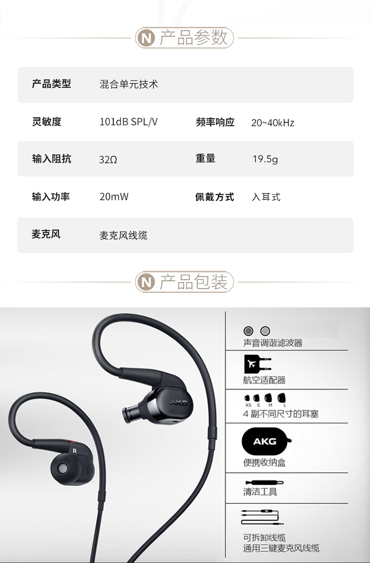 AKG/爱科技 N30入耳式耳塞挂耳音乐运动HIFI圈铁苹果安卓通用耳机