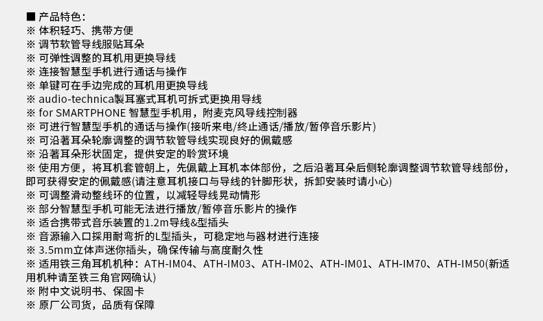 商品名称:Audio Technica/铁三角 AT-HDC1iS/1.2适用于IM01/02/03/04/50/70