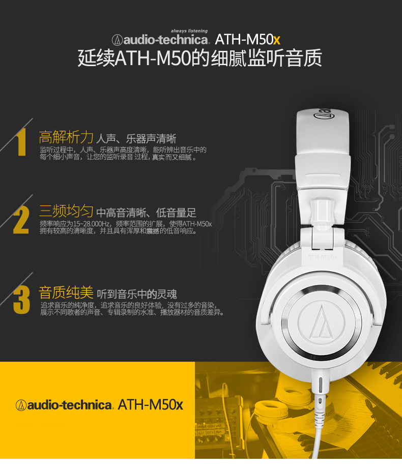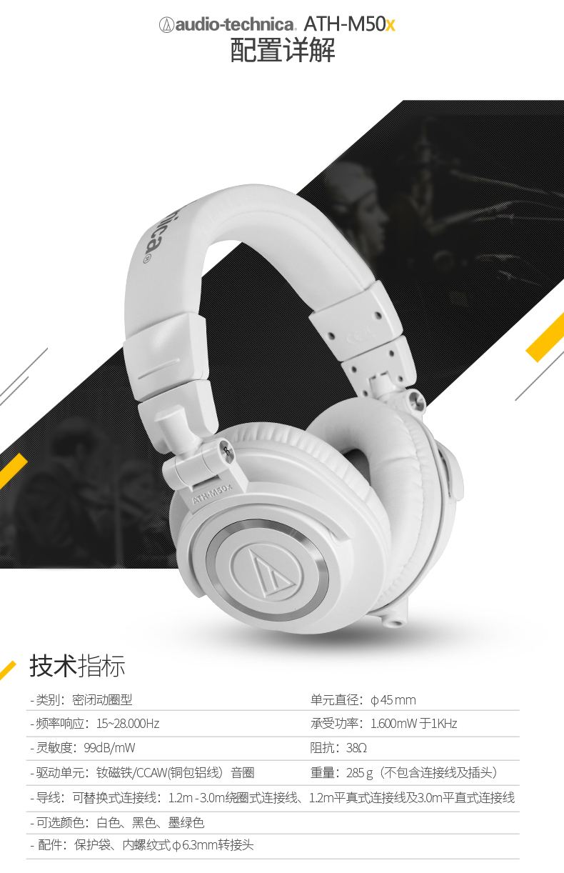 商品名称:Audio Technica/铁三角 ATH-M50x专业头戴式监听耳机