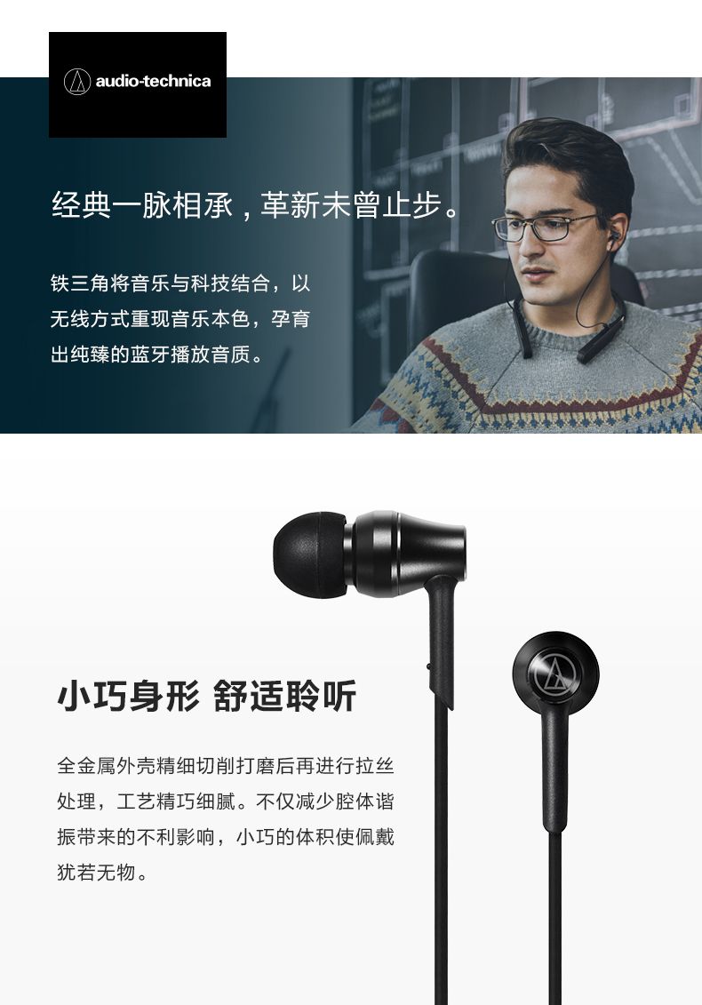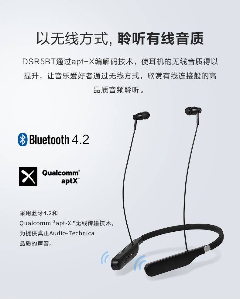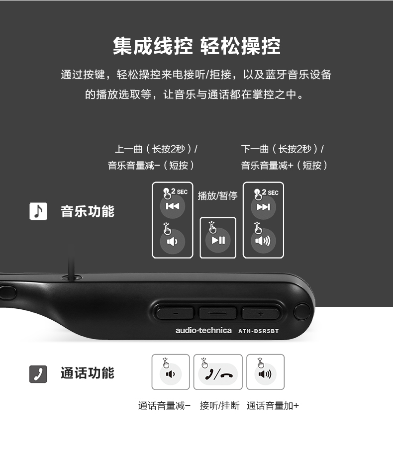 商品名称:Audio Technica/铁三角 ATH-DSR5BT 无线蓝牙线控入耳式颈挂耳机