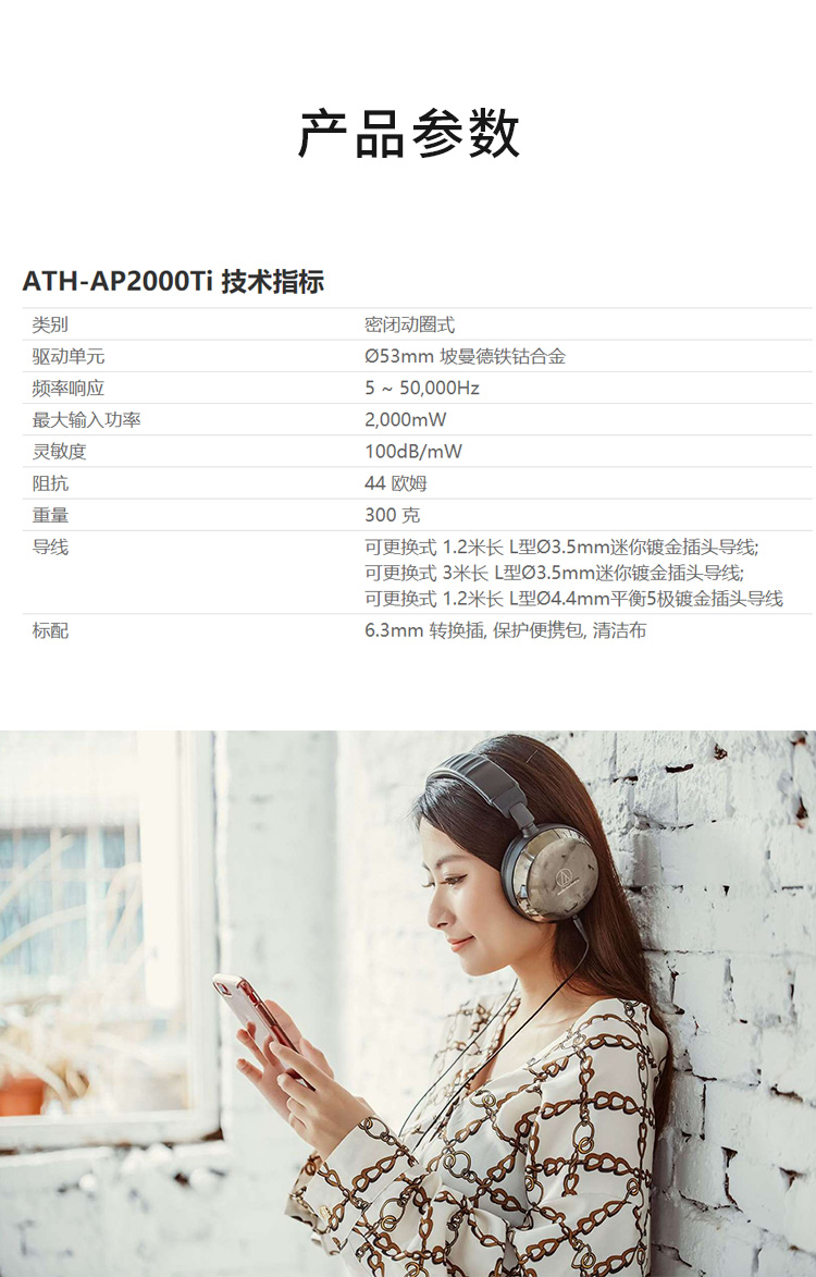 商品名称:Audio Technica/铁三角 ATH-AP2000Ti 头戴式钛合金音乐HIFI耳机