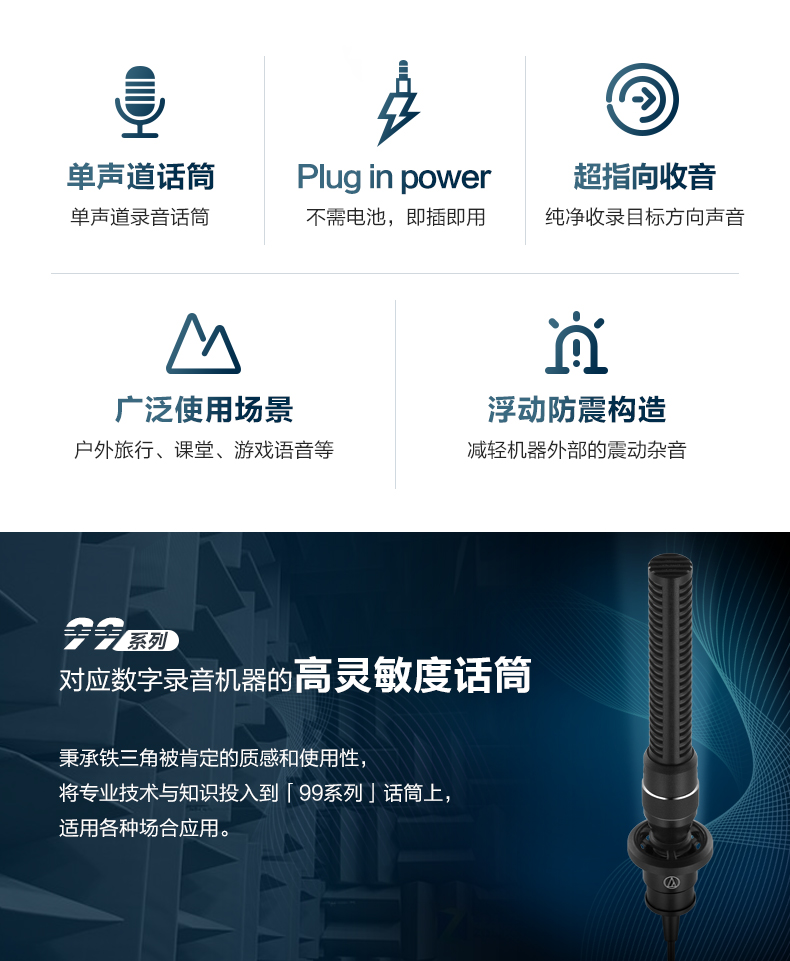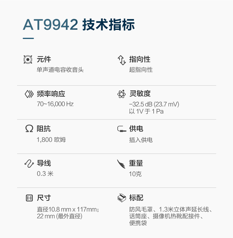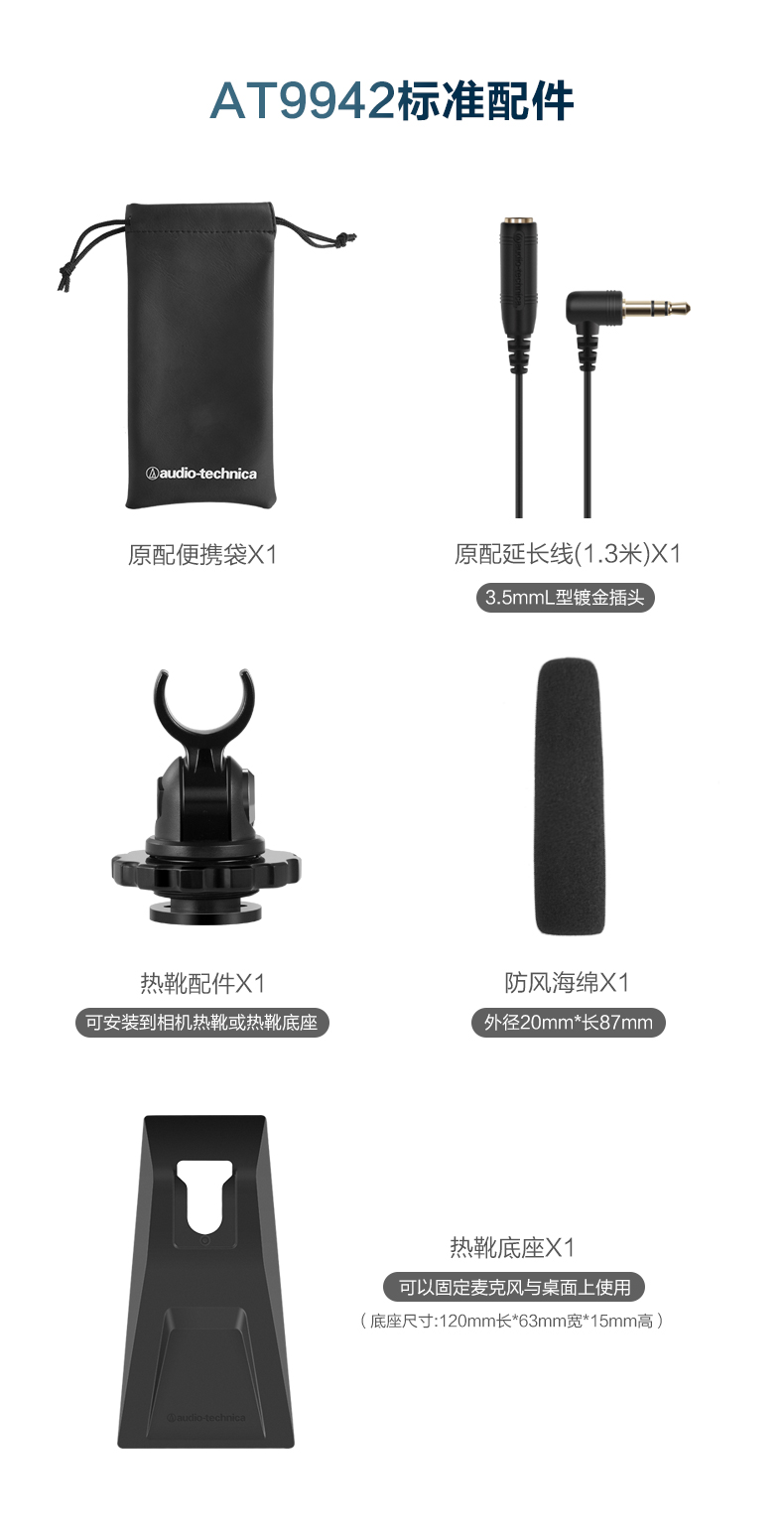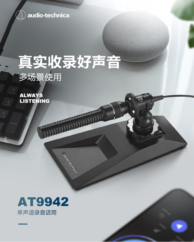 商品名称:Audio Technica/铁三角 AT9942 超指向电容单声道会议录音笔话筒