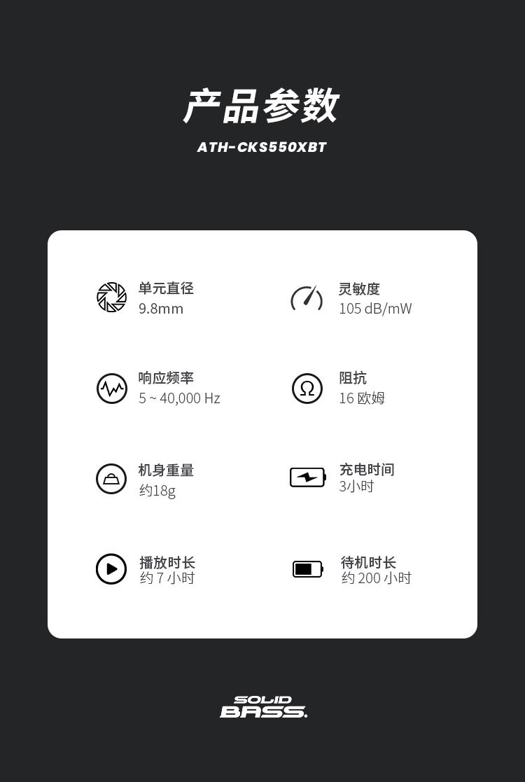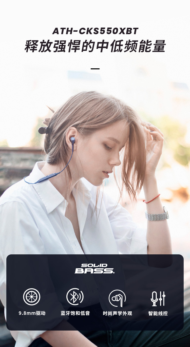 商品名称:Audio Technica/铁三角 ATH-CKS550XBT 重低音运动蓝牙入耳式耳机