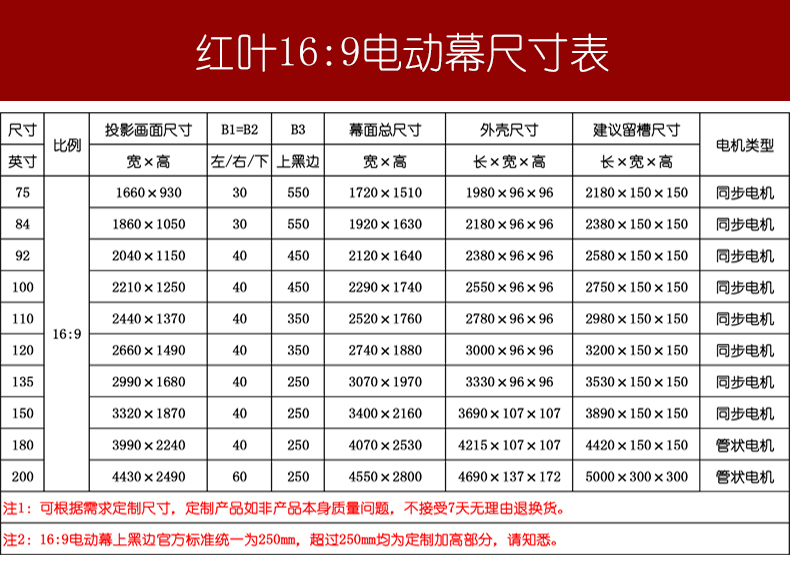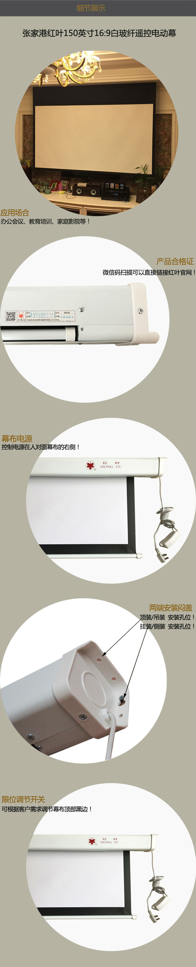 商品名称:Redleaf红叶电动投影仪幕布135寸150寸16:9白玻纤灰玻纤高清3D家用商用幕布