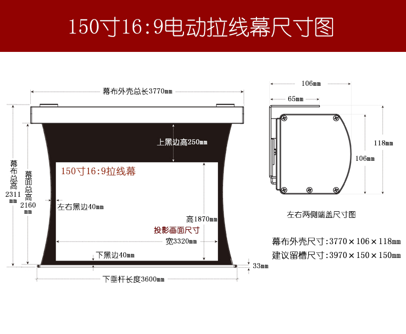 商品名称:Redleaf红叶电动投影仪幕布120寸高清纳米3D4K电动拉线白软幕灰塑软幕金属幕家庭影院幕