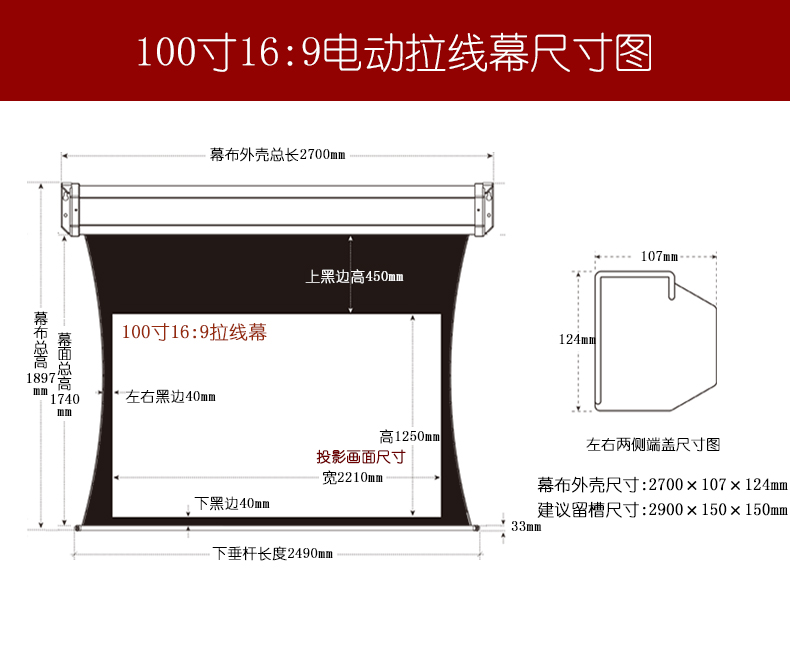 100寸16:9电动遥控拉线幕