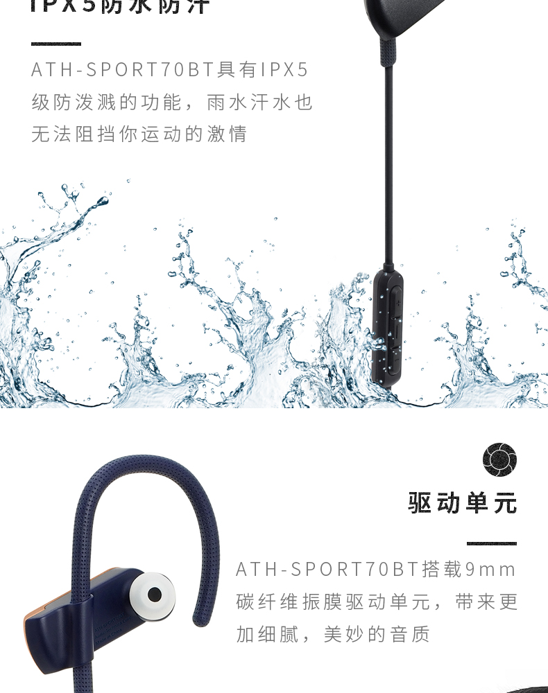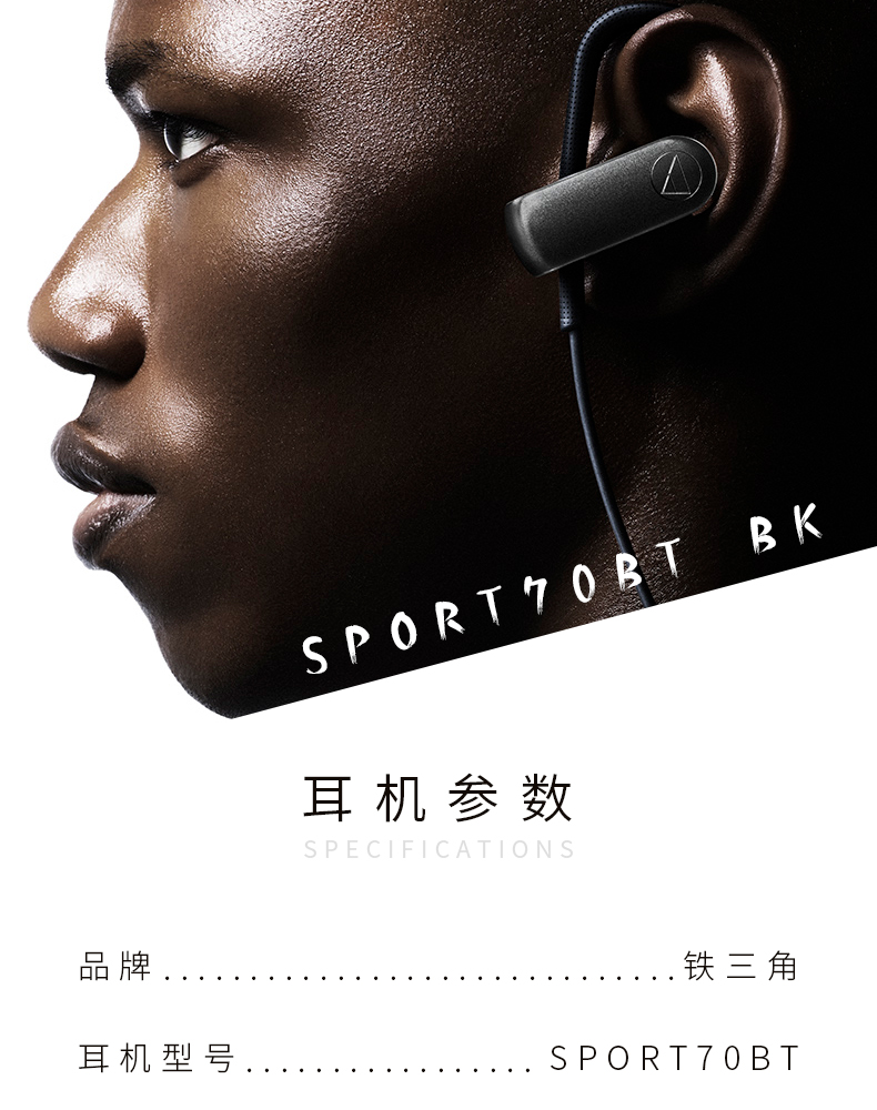 商品名称:Audio Technica/铁三角 ATH-SPORT70BT 无线蓝牙防水挂耳运动耳机